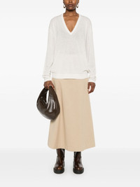 Delicate Statements sweater Highlights - White - Virgin wool-cashmere blend - Knitted construction - Melange effect - Distressed trim detailing - Ribbed v-neck - Long sleeves - Ribbed cuffs and hem - Straight hem Imported Composition Virgin Wool 70%, Cashmere 30% SIZE & FIT Model measurements Height 5 ft 11 in(1.8 m) Bust/Chest 31.49 in(80 cm) Hips 36.61 in(93 cm) Waist 24.4 in(62 cm) FittingInformation Designed to be unstructured, offering a loose fit throughout Made with a midweight knit, this piece offers some stretch