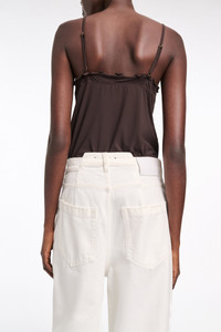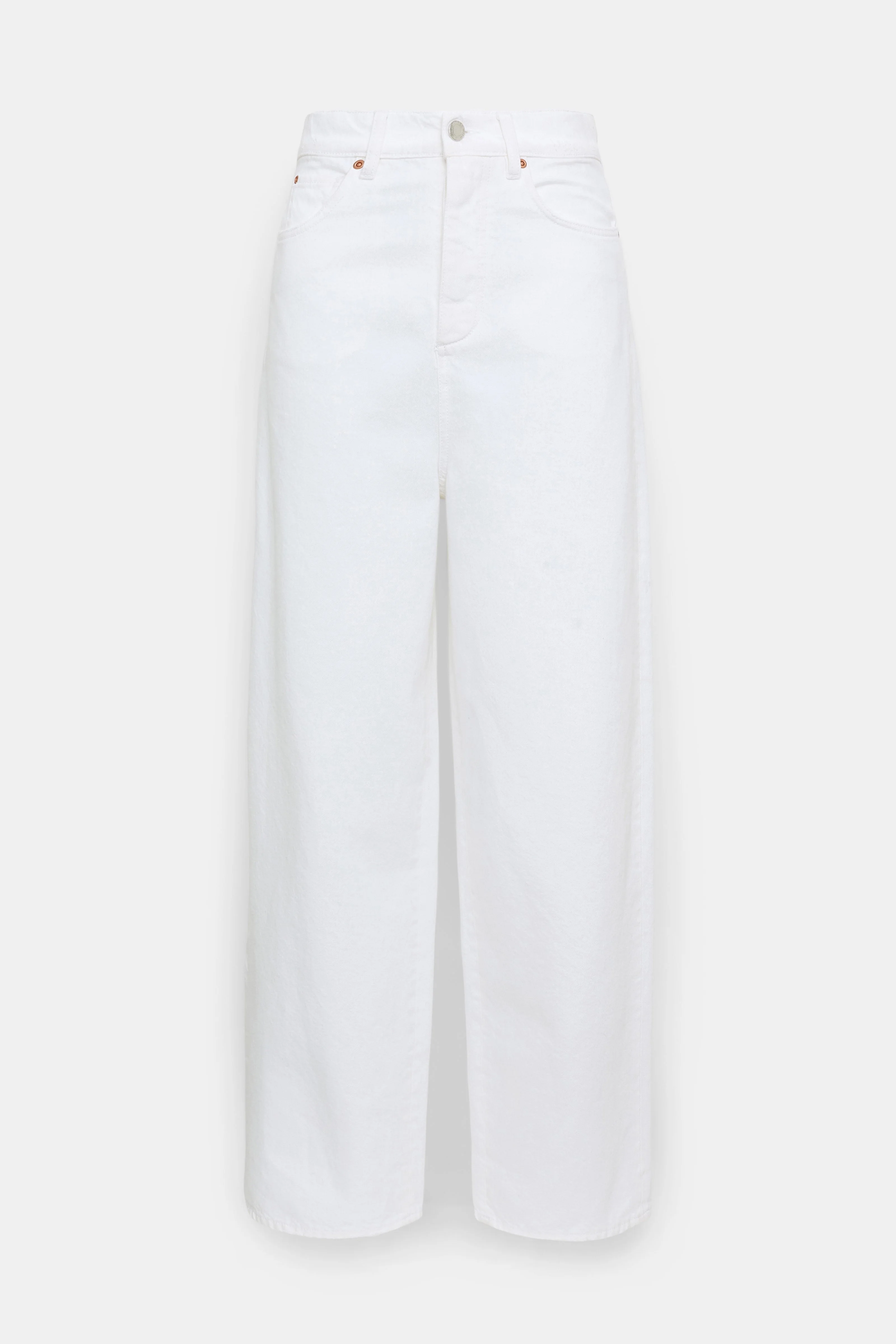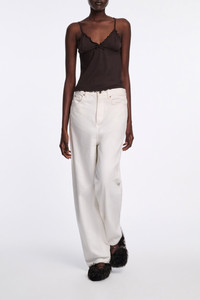 The white jeans have a baggy fit and a peg-top waist. The directional style has a dropped crotch and comes to a slight taper at the ankle. Material & Care - 100 % Cotton - Baggy jeans - Classic 5-pocket styling - Signature button closure - Darts at the back - Leather label - Hand wash cold / Machine wash old - Wash with similar colors Size & Fit - Our model is 179cm tall and wears a size 2 - Dropped crotch - Peg-top silhouette has a straight cut and becomes narrower towards the ankle