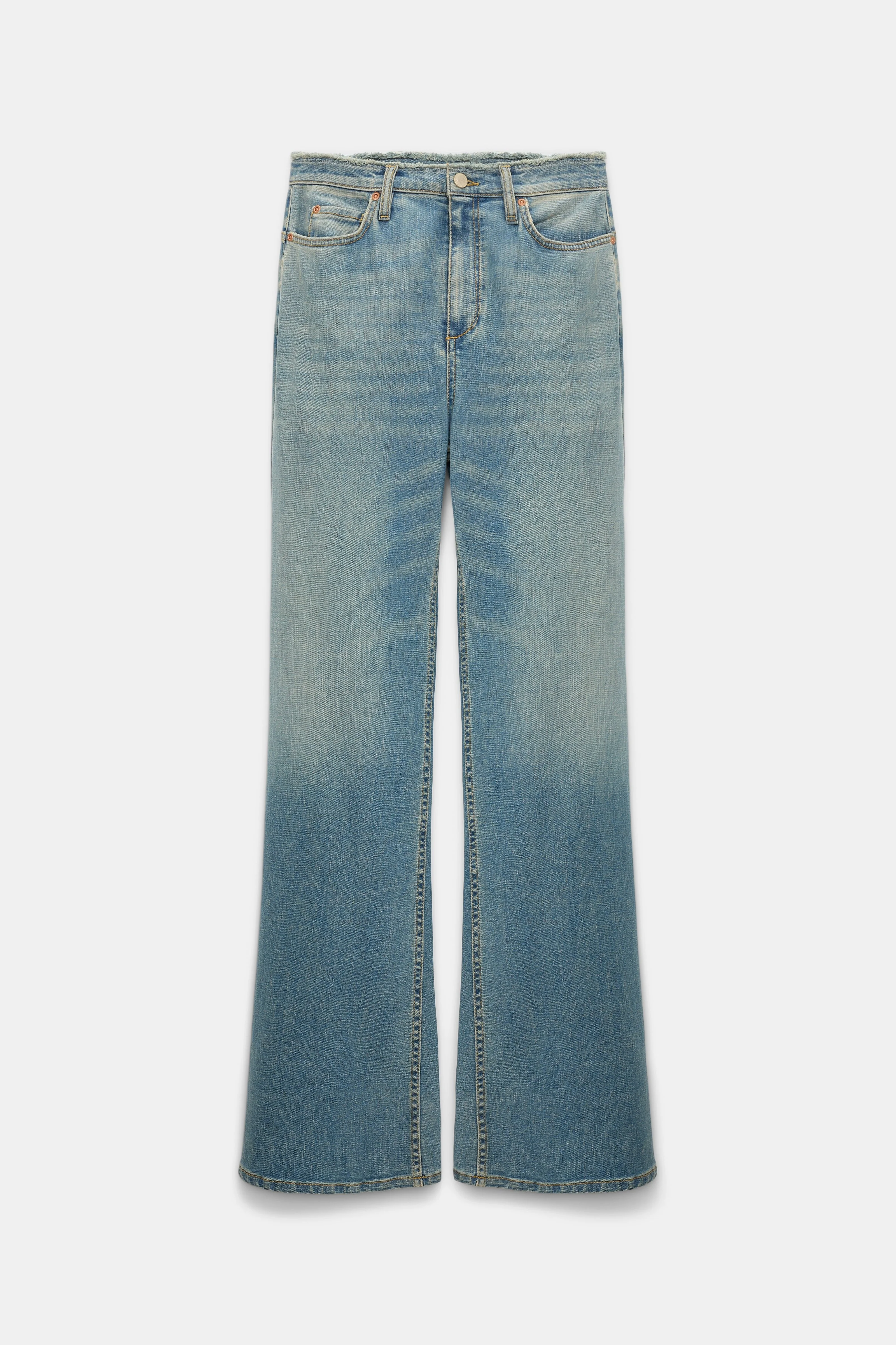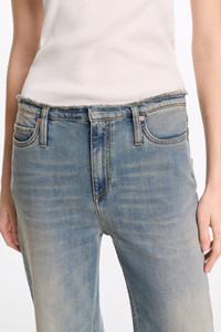 The 5-pocket jeans have a relaxed wide leg and soft distressed finish with whickering.. Material & Care - 98 % Cotton, 2 % Elastane - Wide leg jeans - Classic 5-pocket styling - Signature button closure - Embossed leather patch on the back - Mild wash / Delicates - Wash with similar colors - Caution, may run - Contains non-textile parts of animal origin Size & Fit - Relaxed, wide leg