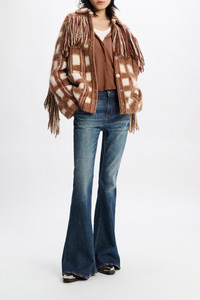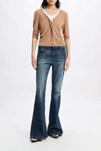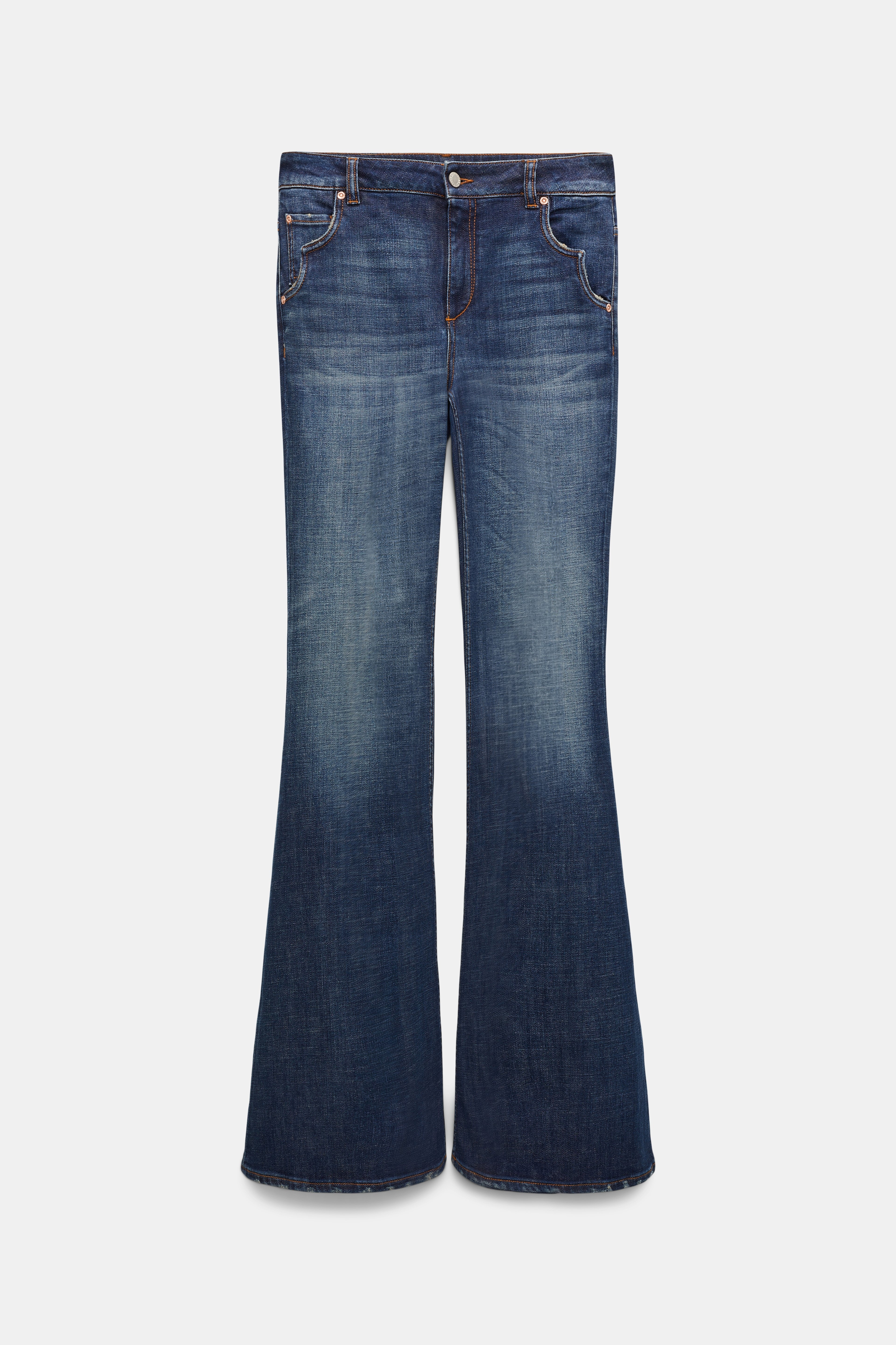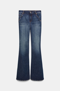 The flared jeans are styled with an extra long leg and have Western-shape side pockets. In other words, they're not just another pair of jeans. Material & Care - 99 % Cotton, 1 % Elastane - Extra long flared jeans with Western details - Classic 5-pocket style - Western-inspired side pocket shape - Signature button closure - Embossed leather logo patch on the back - WE CARE - Cotton content is organic cotton - WE CARE - In order to minimize water consumption, enzymes (rather than stones) were used for the wash of these jeans - Mild wash / Delicates - Wash with similar colors - Caution, may run - Contains non-textile parts of animal origin Size & Fit - Our model is 179 cm tall and wears a size S - Fitted from the waist to knee - Flared leg