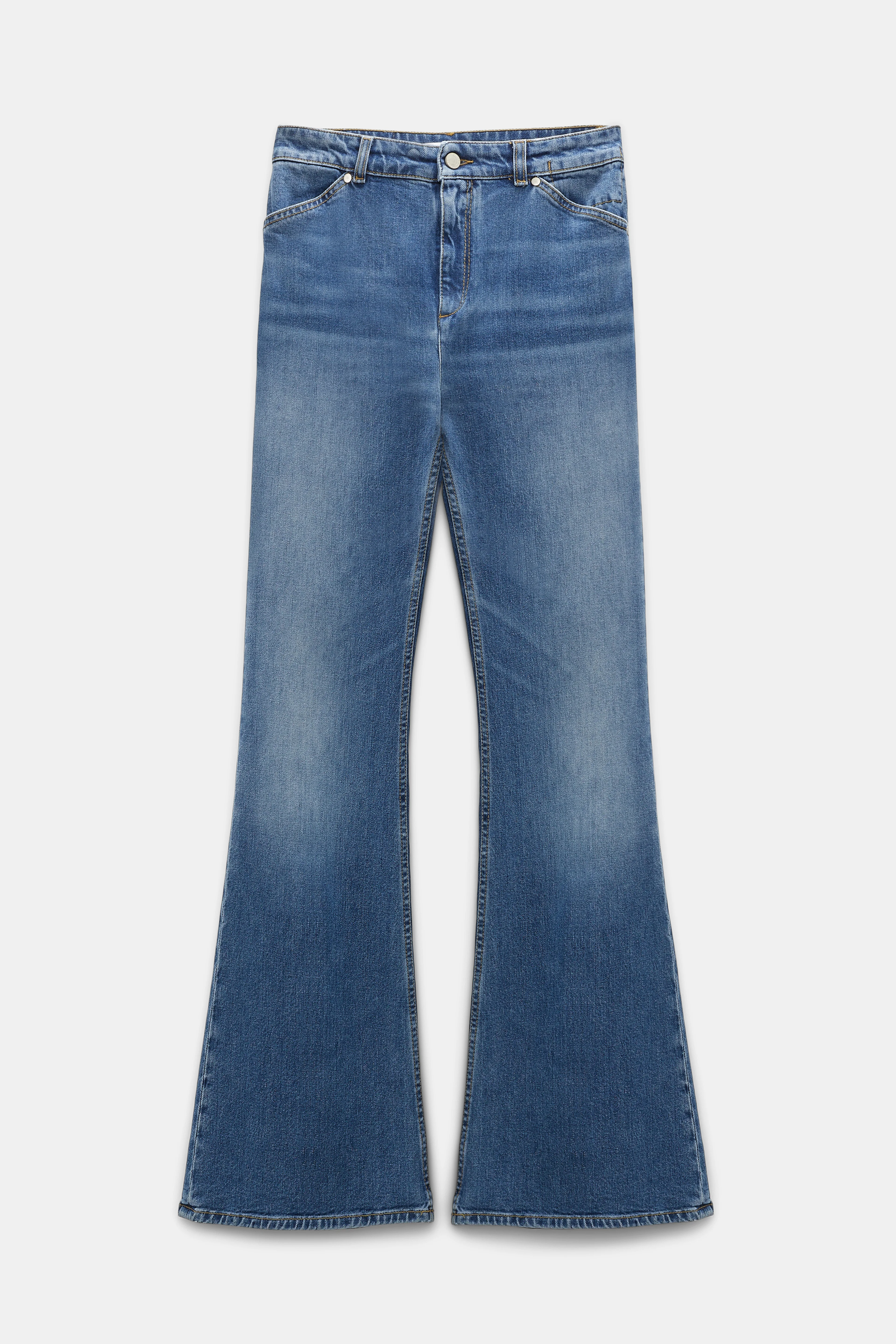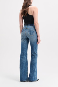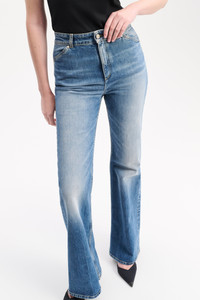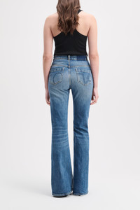 Casual, feminine, and super flattering, the 5-pocket jeans are styled with a flared ankle and eco-friendly stone wash. Dress up with a blazer or throw on a sweatshirt and sneaks for lazy days. Material & Care - 98 % Cotton, 2 % Elastane - Five-pocket jeans - Hidden fly closure - Garment-washed LOVE logo on the back pockets - Indigo blue denim - Vintage eco-friendly stone wash - Belt loops Size & Fit - Our model is 177cm tall and wears a size S - High rise - Fitted from the waist through the thigh - Slight flared leg