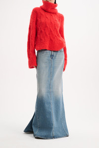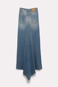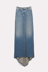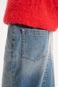 The jean skirt has classic 5-pocket styling and a slim fit. The back of the skirt has a longer draped train. Material & Care - 99 % Cotton, 1 % Elastane - Jean skirt with train - Frayed waistband - Classic five-pocket styling - Signature button closure - Godet insert falls into a train - WE CARE - Cotton content is organic cotton - WE CARE - In order to minimize water consumption, enzymes (rather than stones) were used for the wash of these jeans - Mild wash / delicates - Use mild detergent - Wash with similar colors - Contains non-textile parts of animal origin Size & Fit - Unser Model ist 1,78 m groß und trägt Größe S - Fitted