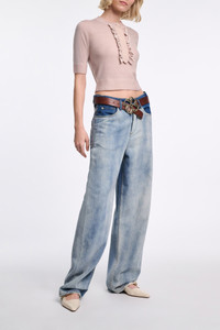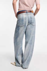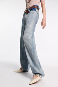 The two-tone jeans have a baggy fit and feature our cloudy wash below the waist and pockets. The high-rise style has a gathered waist at the sides, a slight dropped crotch, and a straight leg which falls into a soft taper at the ankle. Material & Care - 100 % Cotton - Two-tone baggy jeans - Two-tone coloring featuring our cloudy wash - Gathered waistband - Distressed - Classic 5-pocket styling - Signature button closure - Embossed leather logo patch at the back waist - Mild wash / Delicates - Wash with similar colors - Caution, may run - Contains non-textile parts of animal origin Size & Fit - Our model is 180cm tall and wears a size 2 - High-rise - Slight dropped crotch - Straight leg tapers at the hem
