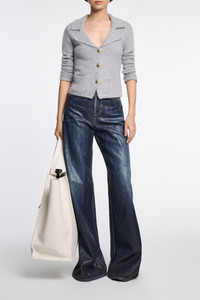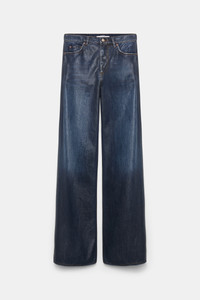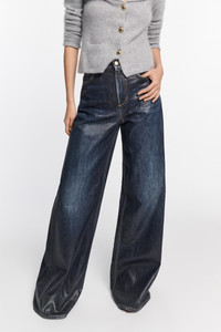 The wide leg jeans are made of coated cotton with an under glass effect. The jeans have a washed logo patch on the back. Material & Care - 100 % Cotton - Wide leg jeans with under glass effect - Classic five-pocket styling - Signature button closure and hidden fly - Washed logo patch on the back Size & Fit - Our model is 179 cm tall and wears a size S - Relaxed, wide leg
