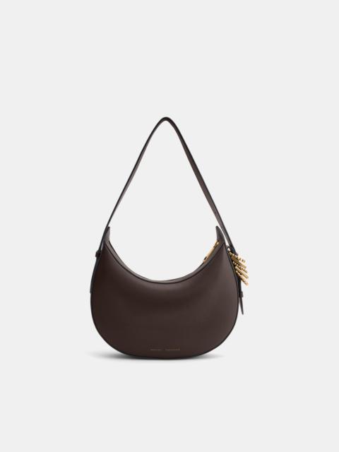 Embracing freedom and individuality. The Half Moon Bag is made in Italy from luxuriously soft calfskin. The hobo-style satchel has a top zip closure and calf suede lining with an integrated back wall credit card slot in leather. Special D-ring hardware loosely attached to the strap references the designer's initials and symbolizes a sense of limitless possibilities. The hardware has mixed textures and a vintage silver-tone finish. The satchel has an adjustable strap and can be worn comfortably on the shoulder. Material & Care - 100 % Leather (calf) - Half Moon Bag in soft calf leather - Calf suede lining - Discrete logo lettering - Adjustable shoulder strap with push-stud hardware - Loosely attached D-ring hardware with mixed textures - Zip closure - Internal back wall credit card slot - Vintage silver-tone hardware and logo - Can be carried on the shoulder - Made in Italy Size & Fit - Dimensions: 16 cm (height) x 29 cm (length) x 4.5 (depth); handle drop: 27 cm