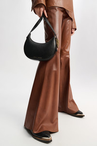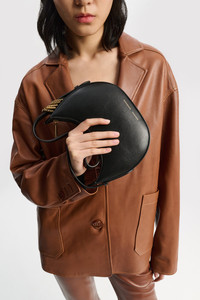 Embracing freedom and individuality. The Half Moon Mini Bag is made in Italy from luxuriously soft calfskin. The hobo-style satchel has a top zip closure and calf suede lining with an integrated back wall credit card slot in leather. Special D-ring hardware loosely attached to the strap references the designer's initials and symbolizes a sense of limitless possibilities. The hardware has mixed textures and a vintage gold-tone finish. The small satchel has an adjustable strap and can be worn comfortably on the shoulder. Material & Care - 100 % Leather (calf) - Half Moon Mini Bag in soft calf leather - Calf suede lining - Discrete logo lettering - Adjustable shoulder strap with push-stud hardware - Loosely attached D-ring hardware with mixed textures - Zip closure - Internal back wall credit card slot - Vintage gold-tone hardware and logo - Can be carried on the shoulder - Made in Italy Size & Fit - Dimensions: 12 cm (height) x 22.5 cm (length) x 3.5 (depth); handle drop: 30 cm
