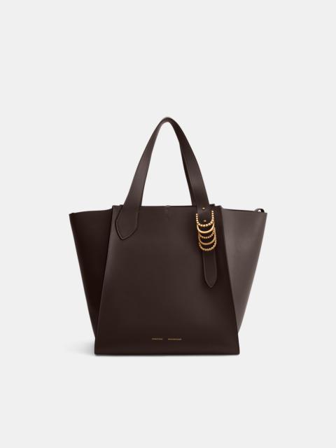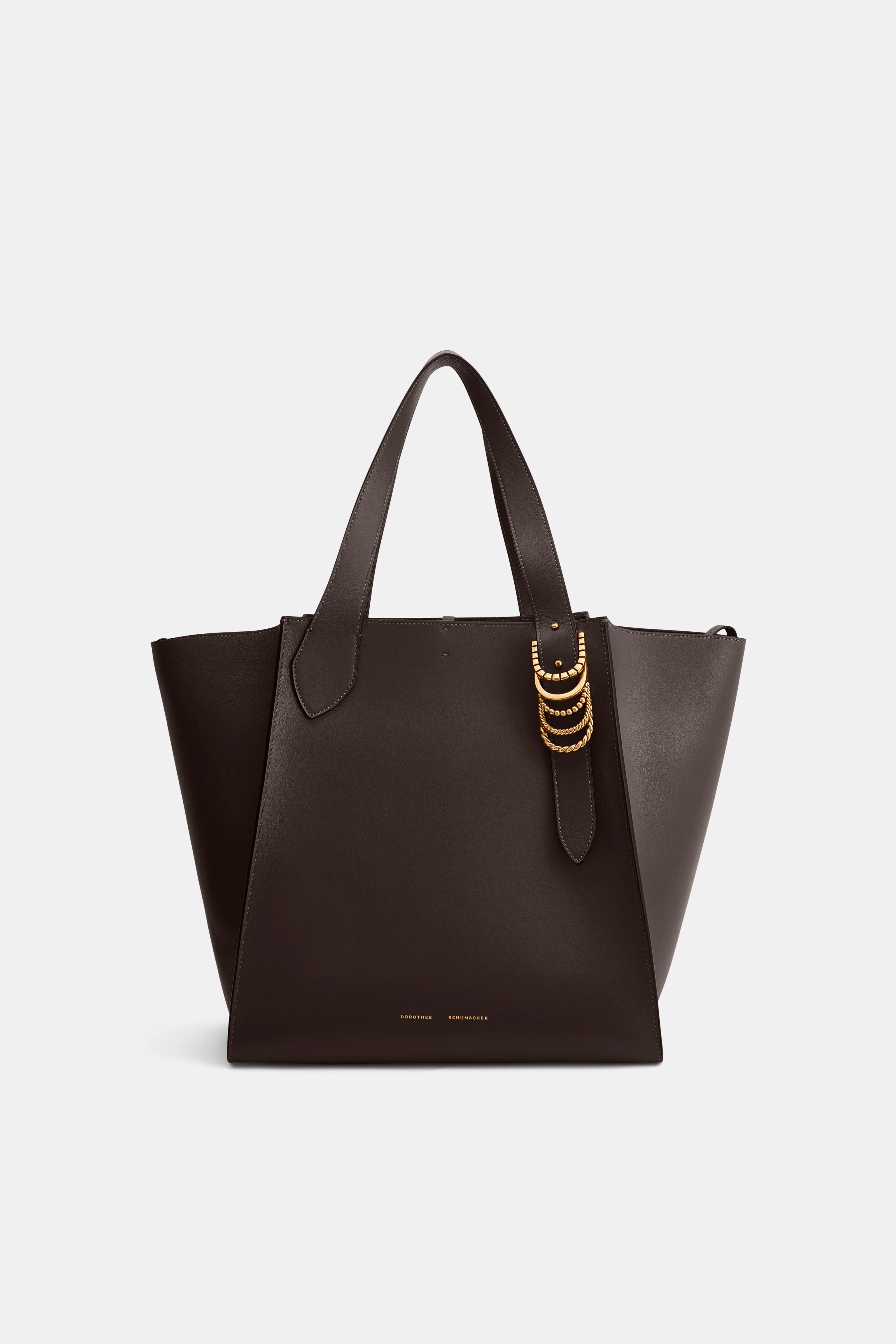 Embracing freedom and individuality. The Tote Bag is made in Italy from luxuriously soft calfskin. The roomy style has a leather tie closure on the top and calf suede lining with a leather zipper pocket attached. The bag can be styled with the sides Material & Care - 100 % Leather (calf) - Tote Bag in soft calf leather - Calf suede lining - Discrete logo lettering - Straps with push-stud hardware - Loosely attached D-ring hardware with mixed textures - Leather tie closure - Inside pocket with zip closure - Vintage silver-tone hardware and logo - Made in Italy Size & Fit - Dimensions: 32 cm (height) x 32 cm (length) x 21.5 (depth); handle drop: 20 cm