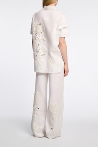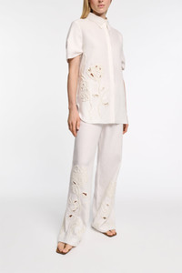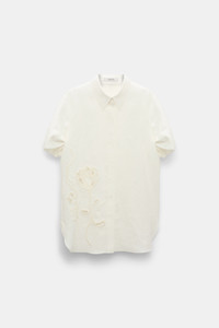 The linen shirt has tonal decorative embroidery and short sleeves with pleat detailing. The relaxed shirt has hidden button closures. Material & Care - 100 % Linen - Relaxed short sleeve linen shirt with decorative embroidery - Classic collar - Hidden button placket - Short sleeves with pleating detail - Hand wash program cold / Machine wash - Wash with similar colors - No dry cleaning - Contains non-textile parts of animal origin Size & Fit - Our model is 180 cm tall and wears a size S - Relaxed, straight silhouette