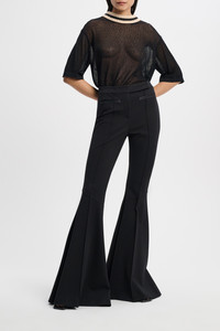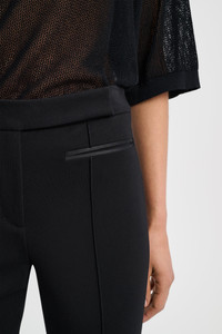 The wide leg pants are crafted in Punto Milano and have a flared leg. The style is dressed up with satin piping on the pockets. Material & Care - 67 % Viscose, 28 % Polyamide, 5 % Elastane - Flared wide leg pants in Punto Milano - Extended tab closure - Satin piping on the pockets - Back welt pockets - Pintuck detailing - Hand wash program / Machine wash - Wash with similar colors - Different care procedures may cause color deviations Size & Fit - Fitted