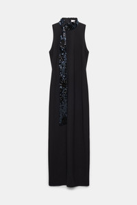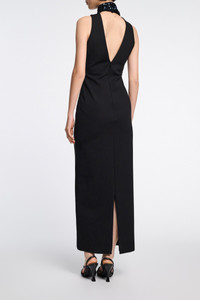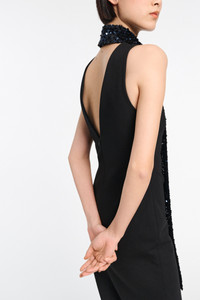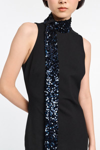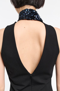 The sleeveless dress is crafted in Punto Milano and has a floor-grazing length. The dress has an open V back and comes with a matching sequin scarf. Material & Care - 67 % Viscose, 28 % Polyamide, 5 % Elastane - Punto Milano dress with sequin scarf - Open V back - Hidden center back zip closure Size & Fit - Our model is 179 cm tall and wears a size S - Fitted