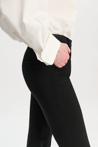 It's all about the pockets: Made from Punto Milano, the cropped flared pants have pressed front pleats and Western-inspired, curvy side pockets. Material & Care - 67 % Viscose, 28 % Polyamide, 5 % Elastane - Cropped flared pants in Punto Milano with Western details - Extended tab closure - Western-inspired side pocket shape - Back welt pockets - Belt loops - Hand wash program / Machine wash - Wash with similar colors Size & Fit - Our model is 180 cm tall and wears a size S - Fitted - Cropped
