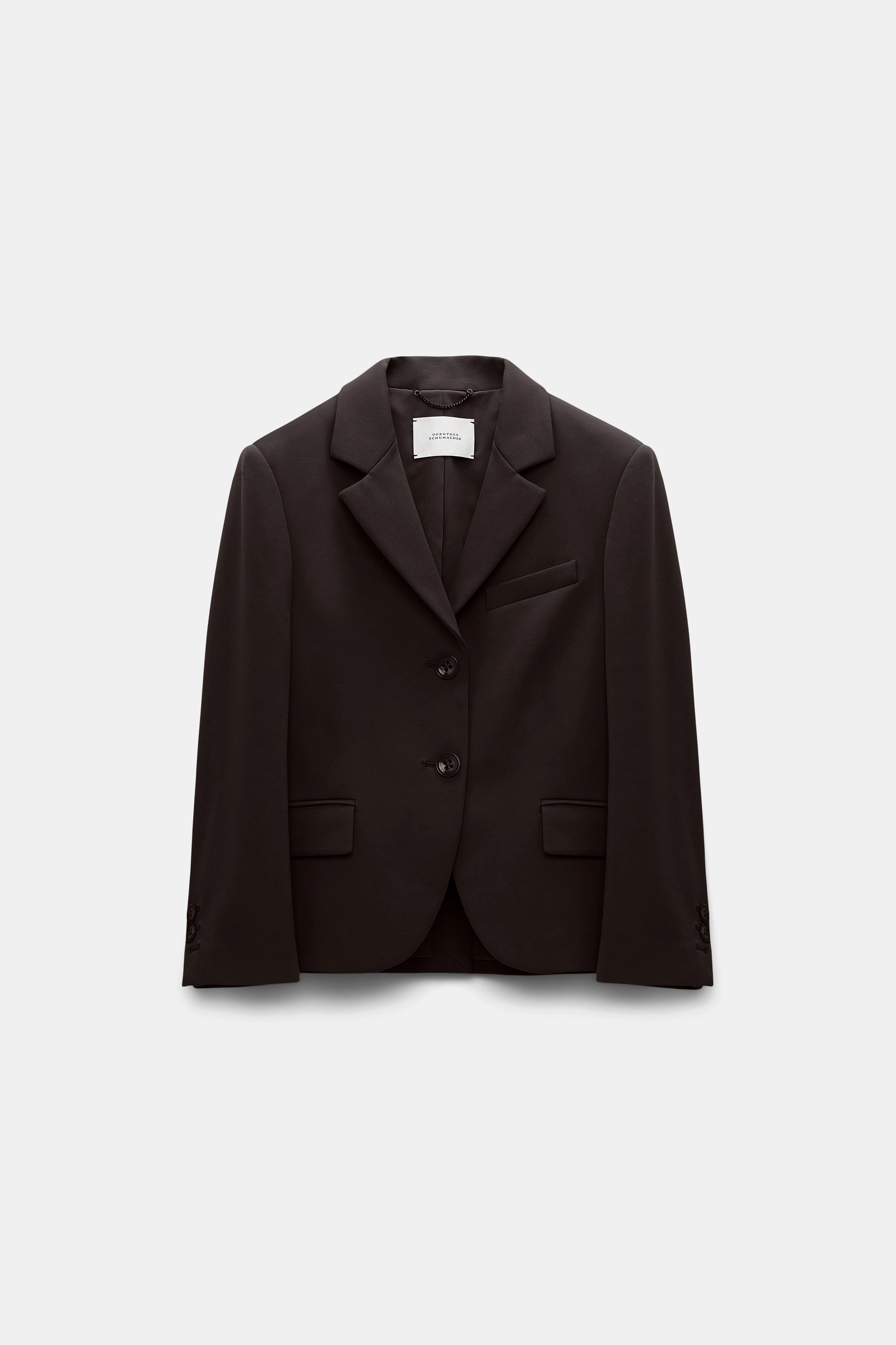 The Punto Milano blazer is fitted and has a cropped silhouette. The blazer has classic styling and cropped sleeves. Material & Care - 67 % Viscose, 28 % Polyamide, 5 % Elastane - Cropped blazer in Punto Milano - Cropped sleeves - Notched lapel - Welted chest pocket - Flap pockets - Lined Size & Fit - Our model is 180cm tall and wears a size 2 - Form-fitting