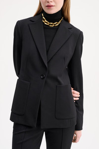 A power piece in Punto Milano, the blazer features sharp tailoring and an expressive lapel. For an immaculate look, pair with matching Punto Milano pants. Material & Care - 67 % Viscose, 28 % Polyamide, 5 % Elastane - Punto Milano blazer - Single-breasted with a button closure - Expressive lapel - Front darts - Patch pockets - Dry cleaning only - Do not expose to extreme light - Different care procedures may ause solour deviations Size & Fit - Our model is 178cm tall and wears a size S - Tailored fit - Fitted