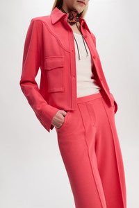 For when you need a break from your favorite blazer: The shirt-jacket hybrid is made from Punto Milano and has Western-inspired patterning on the front. The shirt-jacket is cropped and can be worn as an alternative to blazers. Material & Care - 67 % Viscose, 28 % Polyamide, 5 % Elastane - Shirt-jacket in Punto Milano with Western details - Classic collar - Button closures - Western-inspired front plastron - Flap pockets - Buttoned cuffs - Back yoke - Unlined - Dry cleaning only - No optical brighteners - Do not expose to extreme light - Shield from sharp items Size & Fit - Our model is 180 cm tall and wears a size S - Cropped