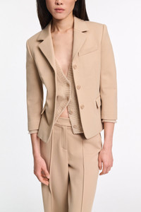 Styled in our forever favorite Punto Milano, the blazer has cropped sleeves and a slim tailored fit. The shrunken style has a notched lapel and can be paired with matching pants for a suit look. Material & Care - 67 % Viscose, 28 % Polyamide, 5 % Elastane - Mini blazer in Punto Milano - Lapel collar - Flap pockets - Chest pocket - Classic cuffs - Dry clean only - No optical brighteners - Do not expose to extreme light - Shield from sharp items Size & Fit - Our model is 178cm tall and wears a size 2 - Cropped sleeve - Fitted