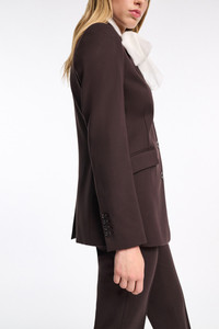 Colored in a rich shade of espresso, the Punto Milano blazer channels a key colorway of the collection. The blazer has a dropped notch lapel and can be paired with the matching pants for a suit look. Material & Care - 67 % Viscose, 28 % Polyamide, 5 % Elastane - Punto Milano blazer - Dropped notched lapel - Flap pockets - Chest pocket - Slit cuffs - Fully lined Size & Fit - Our model is 178cm tall and wears a size 2 - Form-fitting