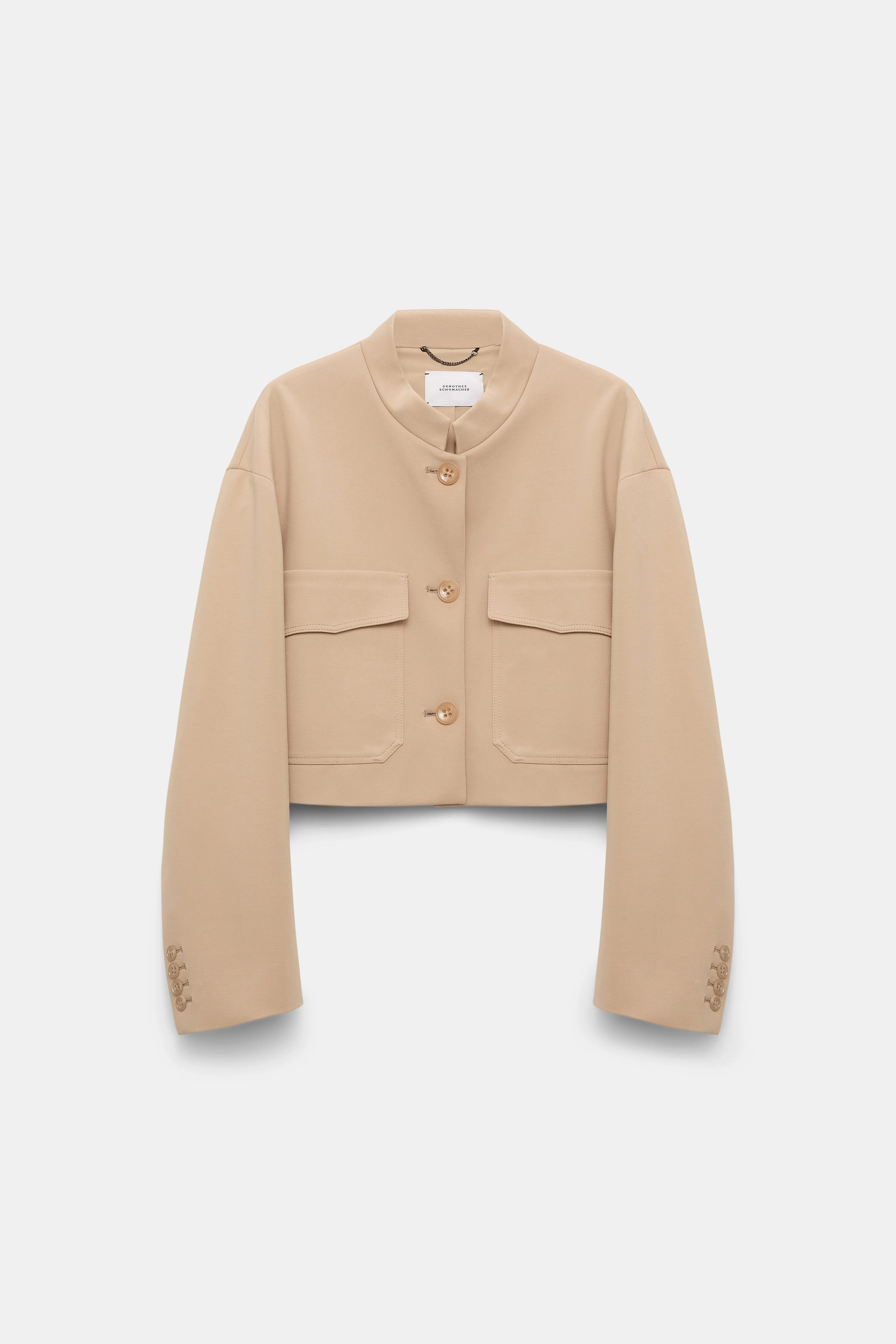 Styled in our forever favorite Punto Milano, the cropped jacket features clean lines and a short stand collar. The jacket has flap pockets and can be paired with matching pants for a suit look. Material & Care - 67 % Viscose, 28 % Polyamide, 5 % Elastane - Cropped jacket in Punto Milano - Stand collar - Flap pockets - Slit cuffs - Button closures - Dry clean only - No optical brighteners - Do not expose to extreme light - Shield from sharp items Size & Fit - Our model is 180cm tall and wears a size 2 - Boxy, cropped silhouette