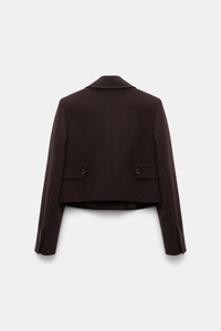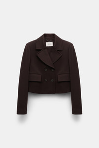 The cropped blazer has a boxy cut and is detailed in our forever favorite Punto Milano. The jacket has flap pockets and double-breasted button closures. Pair with the matching pants for a suit look. Material & Care - 67 % Viscose, 28 % Polyamide, 5 % Elastane - Cropped blazer in Punto Milano - Notched collar - Double-breasted - Flap pockets - Fully lined Size & Fit - Our model is 179cm tall and wears a size 2 - Boxy shape