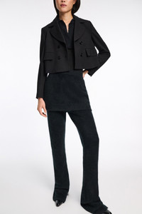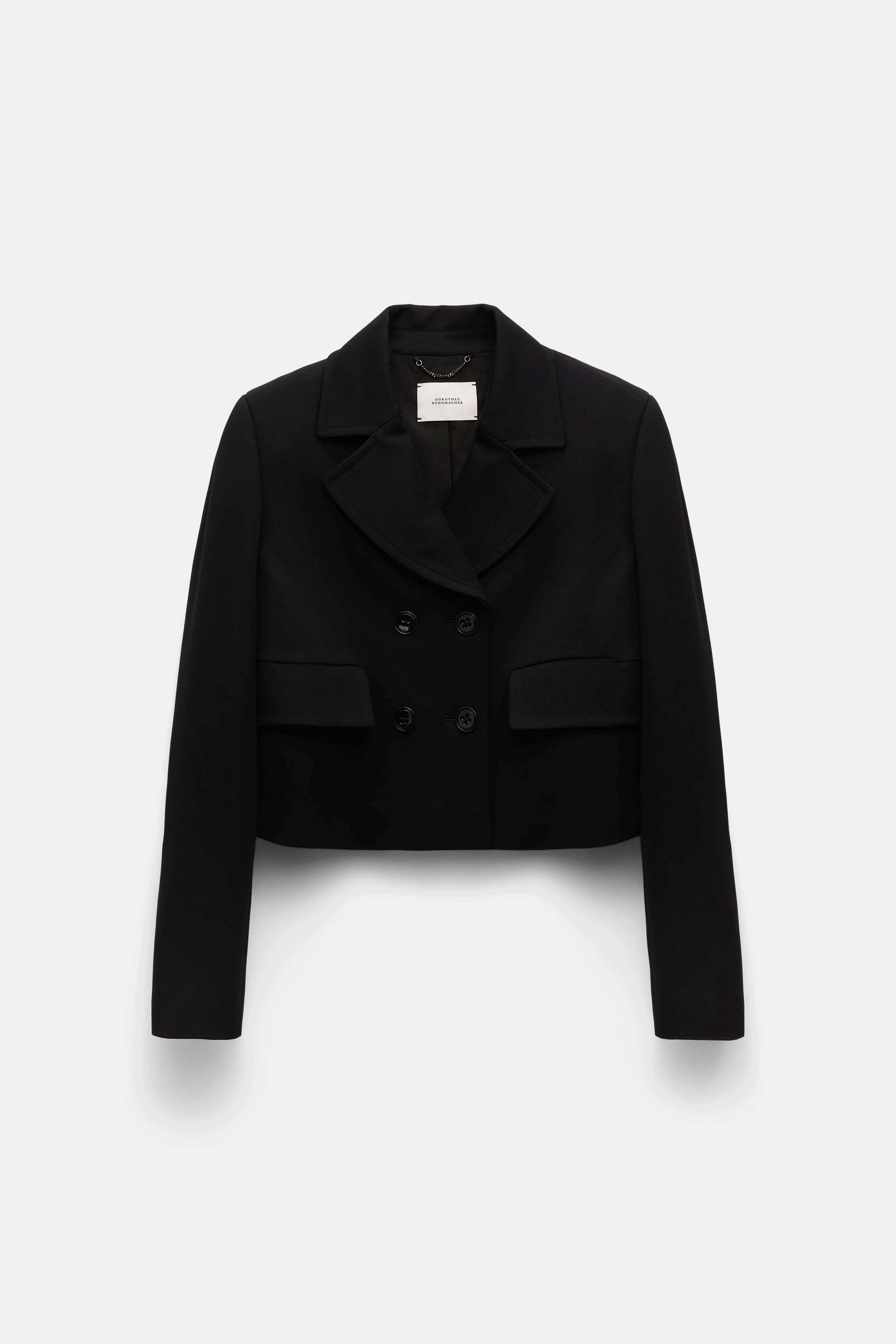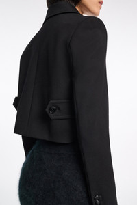 The cropped blazer has a boxy cut and is detailed in our forever favorite Punto Milano. The jacket has flap pockets and double-breasted button closures. Pair with the matching pants for a suit look. Material & Care - 67 % Viscose, 28 % Polyamide, 5 % Elastane - Cropped blazer in Punto Milano - Notched collar - Double-breasted - Flap pockets - Fully lined Size & Fit - Our model is 180cm tall and wears a size 2 - Boxy shape