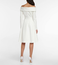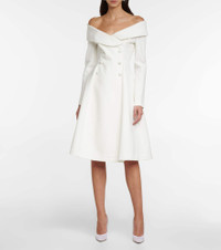 Dorothee Schumacher's designs emote elegance, such as the Emotional Essence midi dress. An off-shoulder design, it has a double-breasted front and a flared skirt. Product Details - Lining: 100% polyester, fully lined - Made in China - Closure: zipped side - Designer color name: Camellia White - Material: 67% viscose, 5% elastane, 28% polyamide - Care instructions: dry clean - Item number: P00697232 Size & Fit - True to size - Off-the-shoulder - Fitted bodice, loose skirt - Mid-weight material - The model seen in the picture is 178cm-5'10" and wearing a size 1