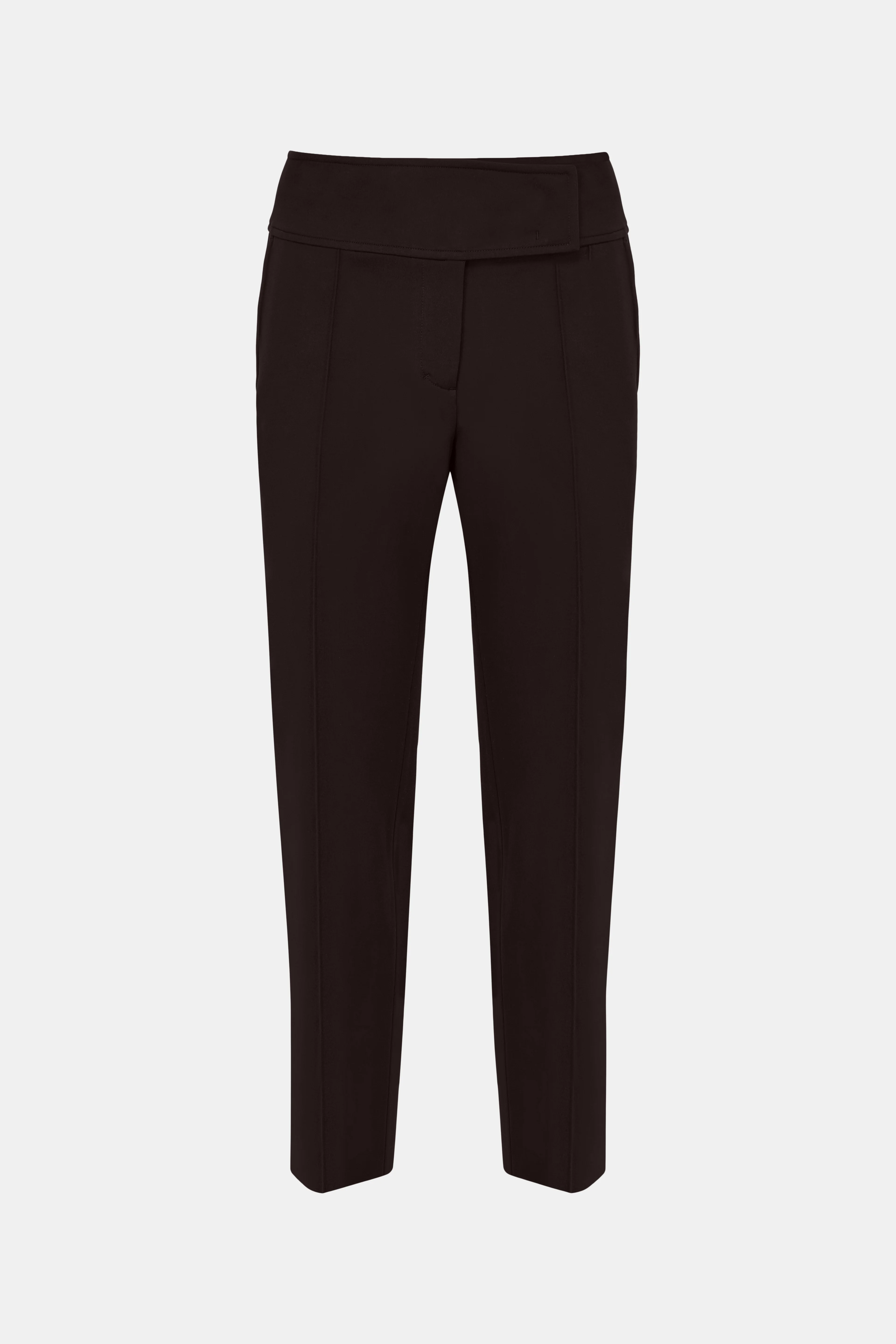 Colored in a rich shade of espresso, the Punto Milano cigarette pants channel a key colorway of the collection. The pants have a wide waistband and a slight cropped leg. The pants can be paired with a matching blazer for a suit look. Material & Care - 67 % Viscose, 28 % Polyamide, 5 % Elastane - Cigarette pants in Punto Milano - Wide waistband - Diagonal side pockets - Piped trim - Back welt pockets Size & Fit - Form-fitting - Slightly cropped
