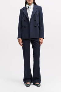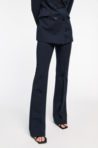 Fitted and flared in Punto Milano, these pants look as incredible as they feel on. Pair with the matching blazer for a suit that takes you anywhere! Material & Care - 67 % Viscose, 28 % Polyamide, 5 % Elastane - Flared pants in Punto Milano - Stitched piping - Hidden fly closure - High waist front - Piped waistband - On-seam side pockets - Back welt pockets - Hand wash programme / Machine wash - Wash with similar colours Size & Fit - Our model is 181 cm tall and wears a size S - High rise - Fitted leg - Flared ankle