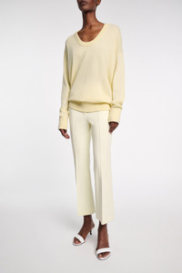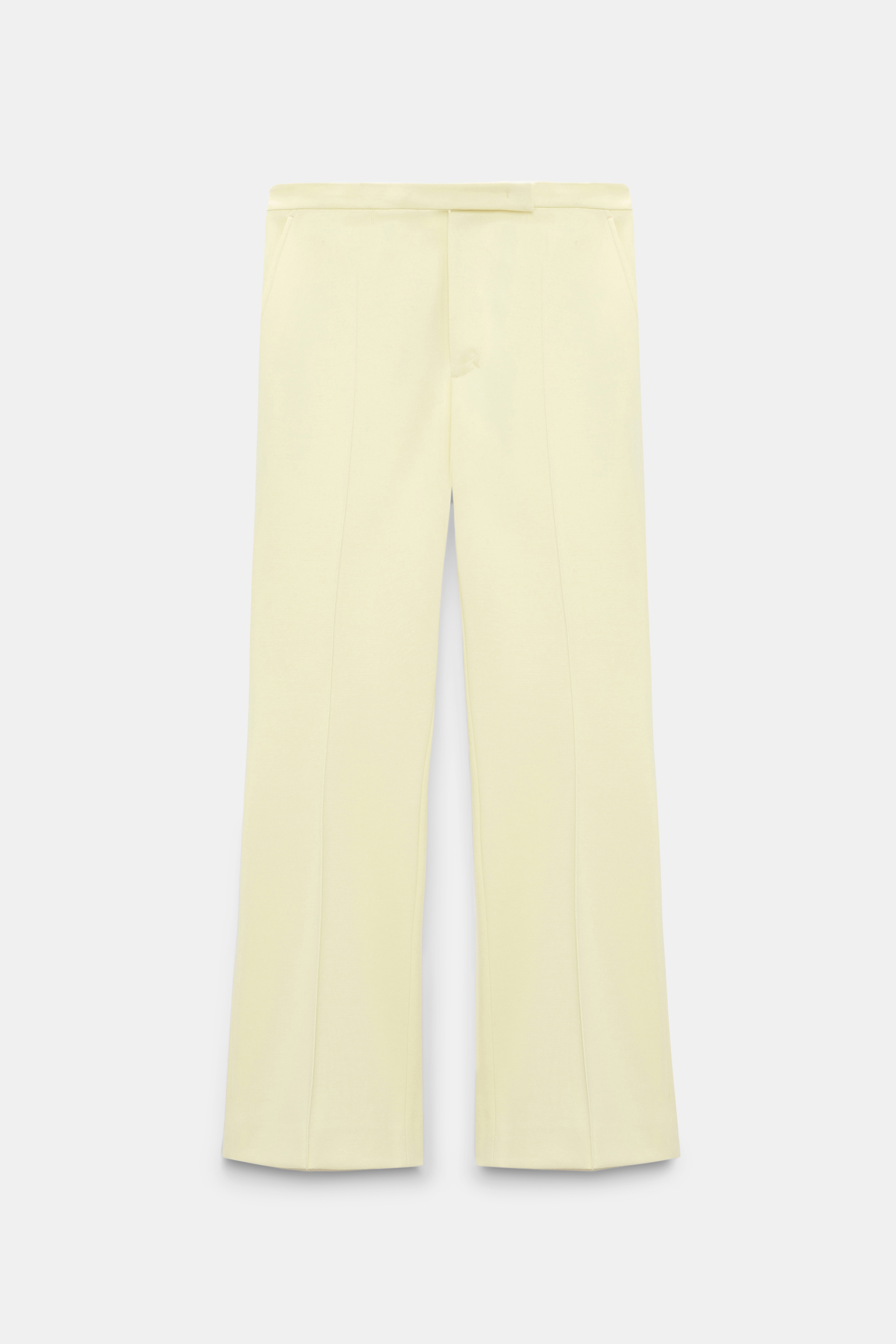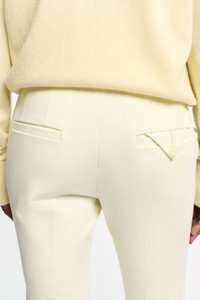 Crafted in our favorite Punto Milano, the fitted pants have a cropped length and flared ankle. The pants have side pockets and back welt pockets. The perfect pair of pants? We think so. Material & Care - 67 % Viscose, 28 % Polyamide, 5 % Elastane - Cropped flared pants in Punto Milano - Diagonal slit pockets - Waistband with extended tab closure - Welt pockets - Piped trim Size & Fit - Our model is 179 cm tall and wears a size S - Fitted