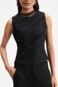 The Punto Milano shell is dressed up with a frothy gathered tulle top layer. The tailored style closes with a hidden side zip. Material & Care - 62 % Viscose, 32 % Polyamide, 6 % Elastane - Punto Milano shell with draped tulle top layer - In-seam side zip - Hand wash programme / machinewash - Use mild detergent - Wash with similar colours - Different care procedures may cause colour deviations Size & Fit - Our model is 180cm tall and wears a size S - Fitted