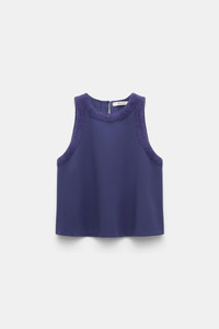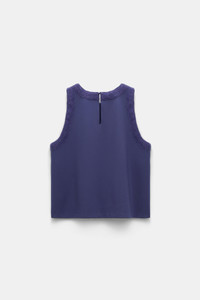 The shell is detailed in our forever favorite Punto Milano with tonal fluffy knit trim. The shell has a slight A-line silhouette and a slit and button closure at the nape. Material & Care - 67 % Viscose, 28 % Polyamide, 5 % Elastane - Shell in Punto Milano - "Fluffy knit" detailing Size & Fit - Our model is 178cm tall and wears a size 2 - Slight A-line