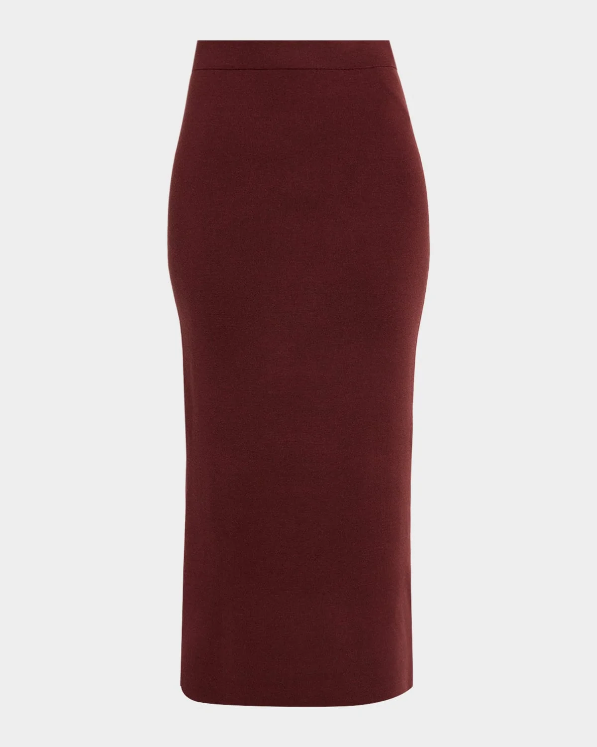 The "Essential Ease" midi skirt from DOROTHEE SCHUMACHER is crafted in a fine woolsilk knit, draping down in a straight silhouette Sits high on the hips Hem falls below the knee Straight silhouette Pullon style Wool/silk/nylon/polyamide Dry clean Made in Portugal