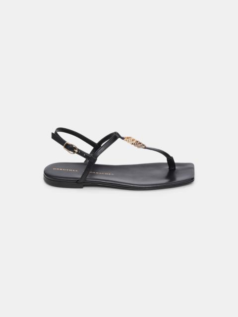 Embracing freedom and individuality. The flat sandals have a square toe and barely-there look. The T-strap is embellished with mixed texture D-rings. Material & Care - 100 % Leather (goat) - Flat T-strap sandals - Goat leather upper and lining - Square toe shape - Signature D-ring detail - Adjustable back strap with signature buckle - Slim insole is designed for a barely there look - Shiny tunit sole embossed with CATCH HER. IF YOU CAN. Size & Fit - Fits true to size - Adjustable back strap