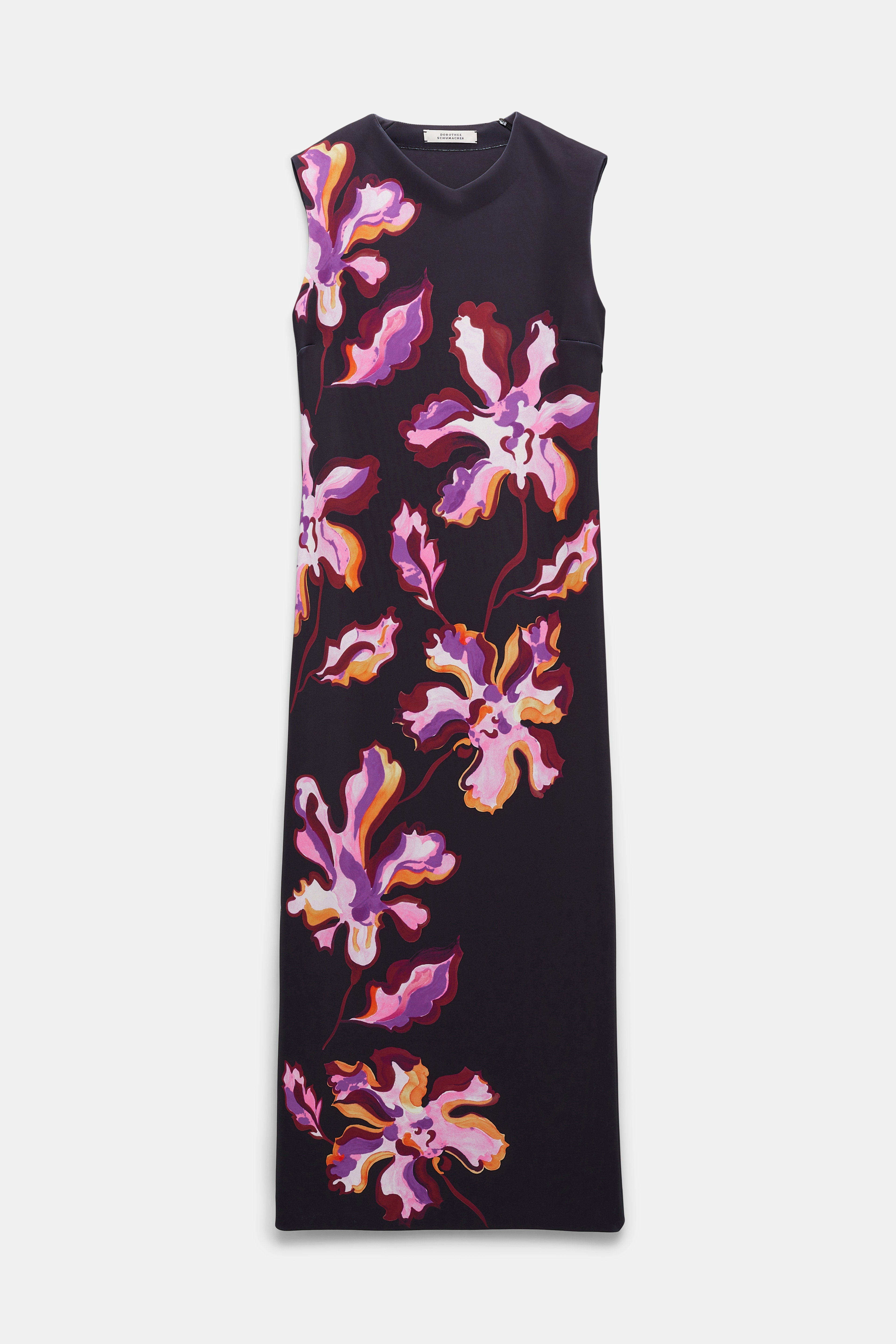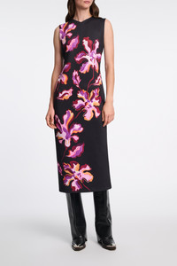 We love a little flower power. The printed neoprene sheath dress has a high V-neckline and thick straps. The dress is form-fitting and has a hidden diagonal zip closure on the back. Material & Care - 88 % Polyester, 12 % Elastane - Printed neoprene sheath dress - High V-neck - Hidden diagonal back zip closure - Hand wash program / Machinewash - Wash with similar colors Size & Fit - Our model is 180 cm tall and wears a size S - Form-fitting