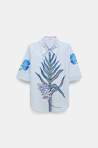 The cotton-poplin blouse has classic shirt styling and showcases the perfect placement of our in-house designed key print. The blouse has half sleeves. Material & Care - 100 % Cotton - Printed cotton-poplin half sleeve blouse - Placement print - Classic collar - Hidden placket - Turned-up cuffs Size & Fit - Fitted shoulders - Loosely fitted
