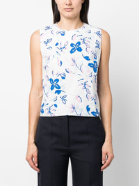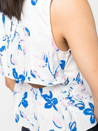 floral-print cut-out sleeveless blouse blue/white cotton all-over floral print round neck sleeveless cut-out detailing elasticated waistband straight hem Imported Composition Outer: Cotton 100% SIZE & FIT Model measurements Height 5 ft 11 in(1.8 m) Bust/Chest 33.07 in(84 cm) Hips 37.4 in(95 cm) Waist 25.19 in(64 cm) Measurement LENGTH 23.22 in(59 cm) FittingInformation This piece fits true to size. We recommend you get your regular size Cut for a slim fit Made with a mid-weight non-stretch fabric