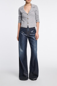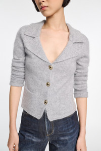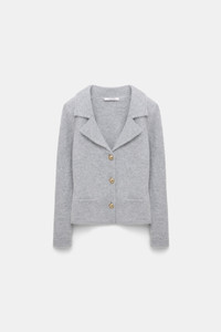 Soft, softer, the softest: Finished with our special new fluffy knit wash, the blazer-style cardigan is extra soft and has a tactile feel. The cropped style has gold-tone buttons and shoulder pads. . Material & Care - 70 % Virgin wool (Merino), 30 % Cashmere - Merino-cashmere blazer-style cardigan - Notched collar - Special new "fluffy knit" wash - Gold-tone buttons - Small slit pockets - Shoulder pads - WE CARE - The yarn is mulesing-free Size & Fit - Our model is 179 cm tall and wears a size S - Cropped - Fitted - Fitted shoulders