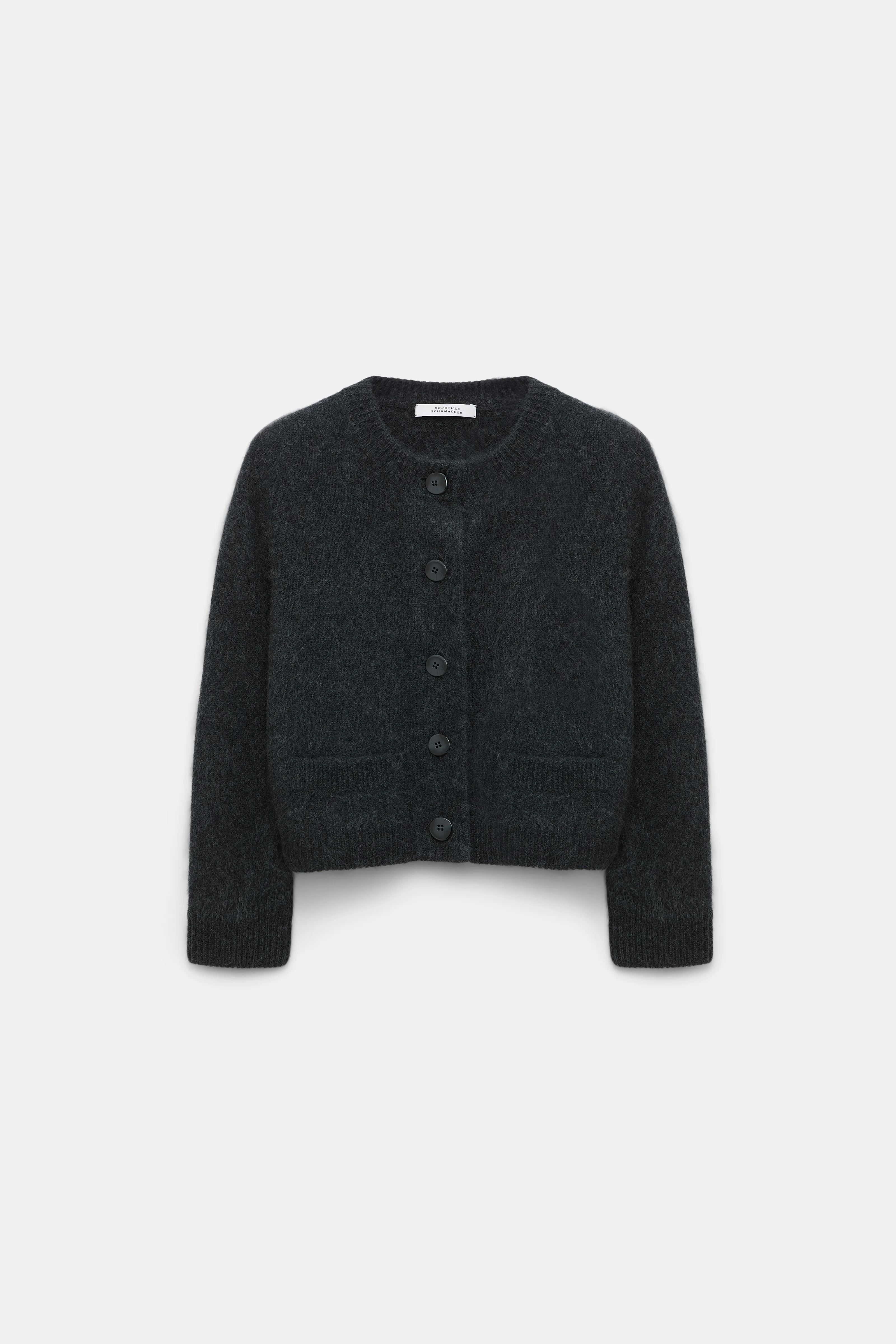 Cozy comes to mind: The cardigan has a round neckline and is knit in a soft cashmere-Merino wool mix. Our fluffy wash gives the boxy, cropped style an extra soft feel. Material & Care - 70 % Virgin wool (Merino), 30 % Cashmere - Round neck cardigan - "Fluffy knit" wash - Double layer ribbing - Button closures - WE CARE - The wool content is mulesing-free - Hand wash cold / Machine wash cold - Wash with similar colors - Reshape in wet condition - Learn more about Materials & Care Size & Fit - Our Model is 178cm tall and wears a size 2. - Boxy cropped fit, fitted at the hem - Classic shoulders - Narrow sleeves