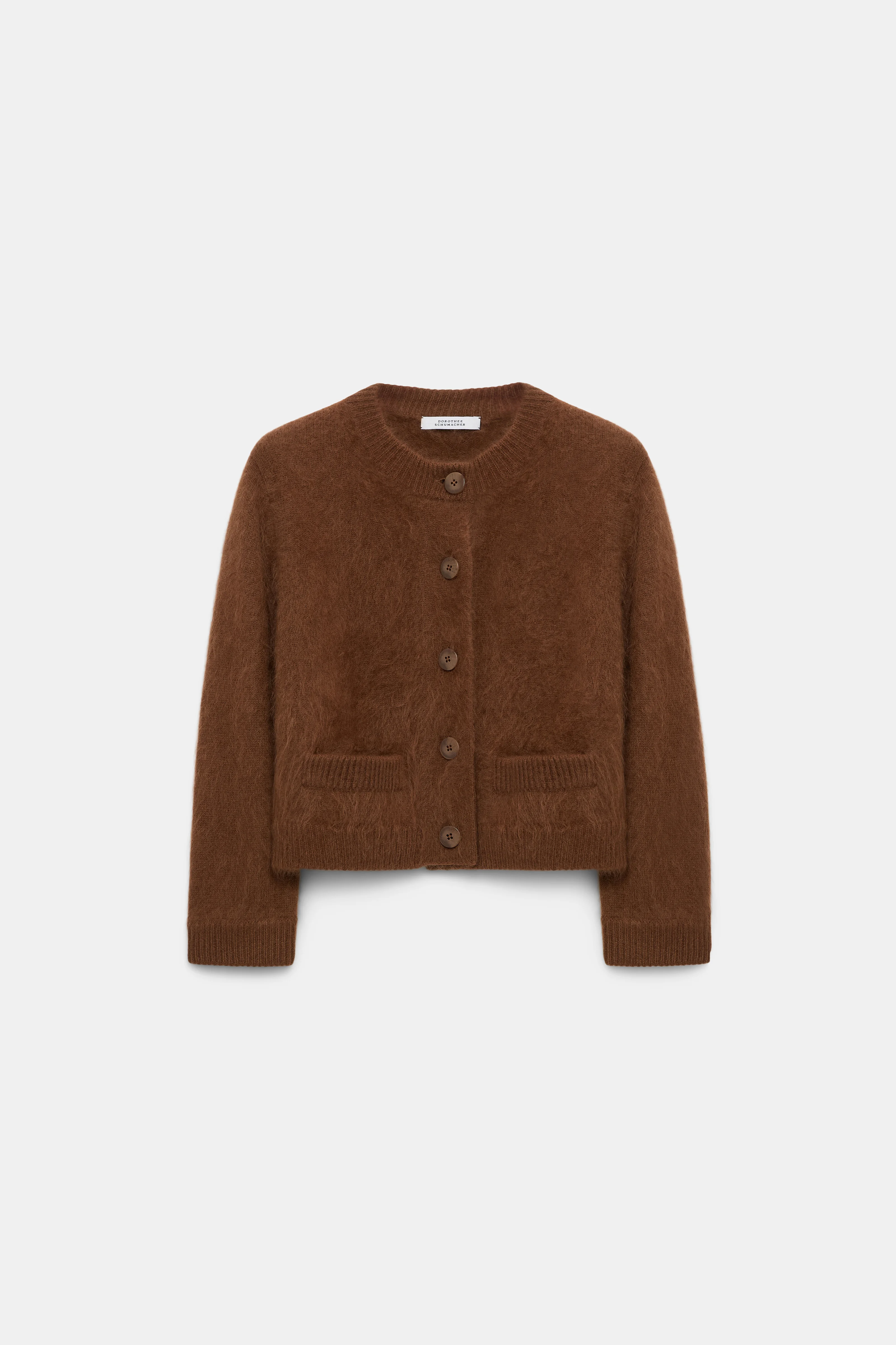 Cozy comes to mind: The cardigan has a round neckline and is knit in a soft cashmere-Merino wool mix. Our fluffy wash gives the boxy, cropped style an extra soft feel. Material & Care - 70 % Virgin wool (Merino), 30 % Cashmere - Round neck cardigan - "Fluffy knit" wash - Double layer ribbing - Button closures - WE CARE - The wool content is mulesing-free - Hand wash cold / Machine wash cold - Wash with similar colors - Reshape in wet condition - Learn more about Materials & Care Size & Fit - Our Model is 178cm tall and wears a size 2. - Boxy cropped fit, fitted at the hem - Classic shoulders - Narrow sleeves