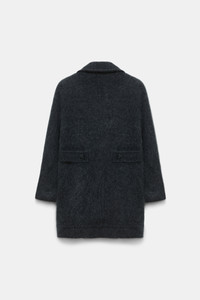 Cozy comes to mind: The coat has a wide collar and is knit in a soft cashmere-Merino wool mix. Our fluffy wash gives the loosely fitted style an extra soft feel. Material & Care - 67 % Virgin wool (Merino), 28 % Cashmere, 4 % Polyamide, 1 % Elastane - Coat with wide collar - “Fluffy knit” wash, pleated with elastane - Topstitch finishing - Flap pockets, latch at the back - Shoulder pads - Button closures - WE CARE - The wool content is mulesing-free - Dry clean only - No optical brighteners - Do not expose to extreme light - Shield from sharp items - Learn more about Materials & Care Size & Fit - Our Model is 179cm tall and wears a size 2. - Straight. loosely fitted shape - Fitted shoulders - Classic sleeves