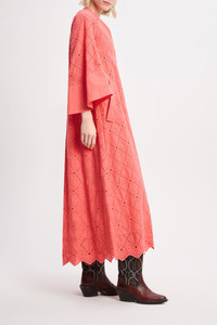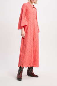 The long caftan dress is made of cotton broderie anglaise. The relaxed style has smooth cuffs and scalloped edges on the collar and hem. Material & Care - 93 % Cotton, 7 % Polyester - Cotton broderie anglaise caftan dress - Smooth cuffs - Open collar and hem with scalloped edges - Separate slip lining Size & Fit - Relaxed fit - Fitted shoulders
