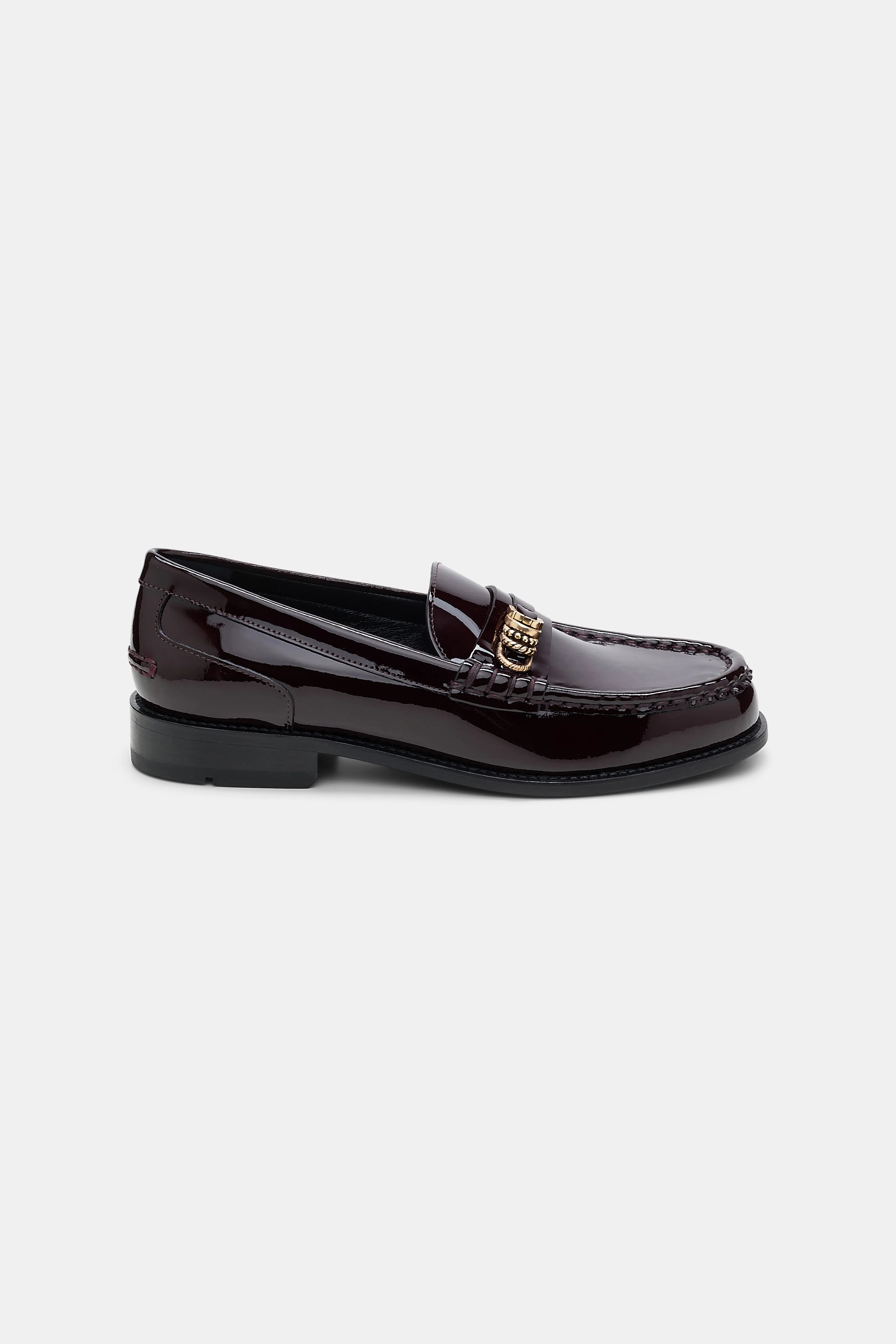 Embracing freedom and individuality: The slip-on loafers are crafted in shiny patent leather and feature our dynamic D-ring hardware. Material & Care - 100 % Leather (calf) - Patent calf leather loafers - Goat leather lining - Signature fanned mixed metal D-rings - Hand-stitched upper - Leather sole - D-Rose metal trim on sole Size & Fit - Fits true to size