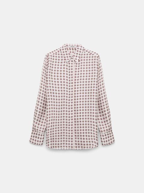Signature print, signature style: The shirt has a relaxed fit and features our signature tie print. The shirt is made from silk twill and has a concealed button placket. Material & Care - 100 % Silk - Printed silk twill shirt - Signature tie print - Classic shirt collar - Hidden button placket - Hand wash program / Machine wash - Wash with similar colors Size & Fit - Our Model is 178cm tall and wears a size 2. - Slight dropped shoulders - Relaxed fit