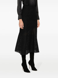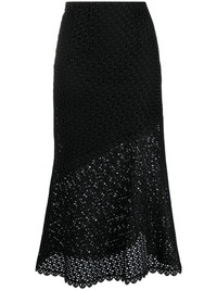Graphic Performance macrame midi skirt Highlights - Jet black - Full lining - Pattern-lace detailing - Macrame detailing - Seam detailing - High-waisted - Concealed rear zip fastening - Mid-calf length - Scallop hem Imported Composition Lining: Acetate 68%, Viscose 32% Outer: Polyester 100% SIZE & FIT Model measurements Height 5 ft 10 in(1.79 m) Bust/Chest 33.07 in(84 cm) Hips 35.82 in(91 cm) Waist 24.01 in(61 cm) FittingInformation This midi-length skirt is intended to be worn high on the waist Made from a midweight non-stretch fabric This piece fits true to size – take your usual size Washing instructions Machine Wash