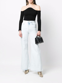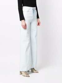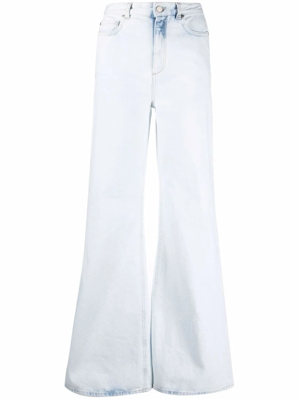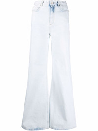 high-waist wide-leg jeans light blue cotton logo patch to the rear light wash high waist belt loops front button and zip fastening wide leg classic five pockets Imported Composition Outer: Cotton 100% Lining: Polyester 65%, Cotton 35% Washing instructions Machine Wash