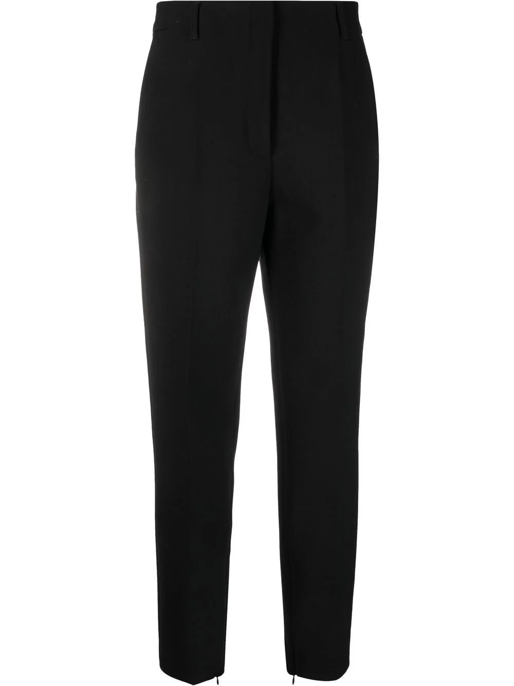 high-waisted cigarette trousers Highlights - Black - Virgin wool blend - High waist - Concealed front fastening - Two side inset pockets Imported Composition Polyester 53%, Virgin Wool 47% SIZE & FIT Model measurements Height 5 ft 10 in(1.78 m) Bust/Chest 32.28 in(82 cm) Hips 35.03 in(89 cm) Waist 23.22 in(59 cm) Washing instructions Dry Clean Only