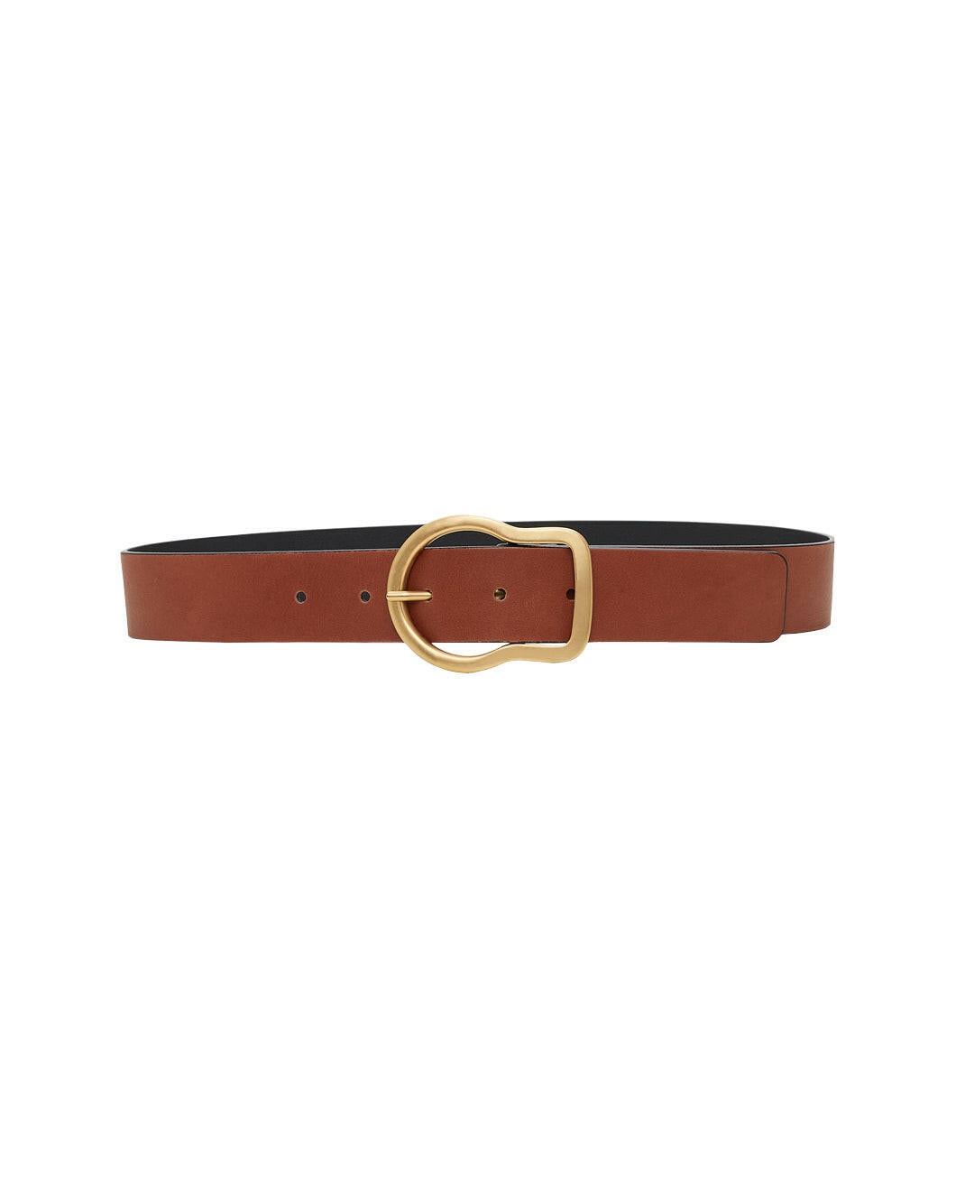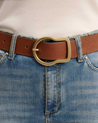 FINAL SALE The CPH Bold Statements Belt in True Cognac by Dorothee Schumacher is a wide, calfskin belt featuring a gold buckle and painted edges. - 100% Leather - Width: 4 cm - #55703