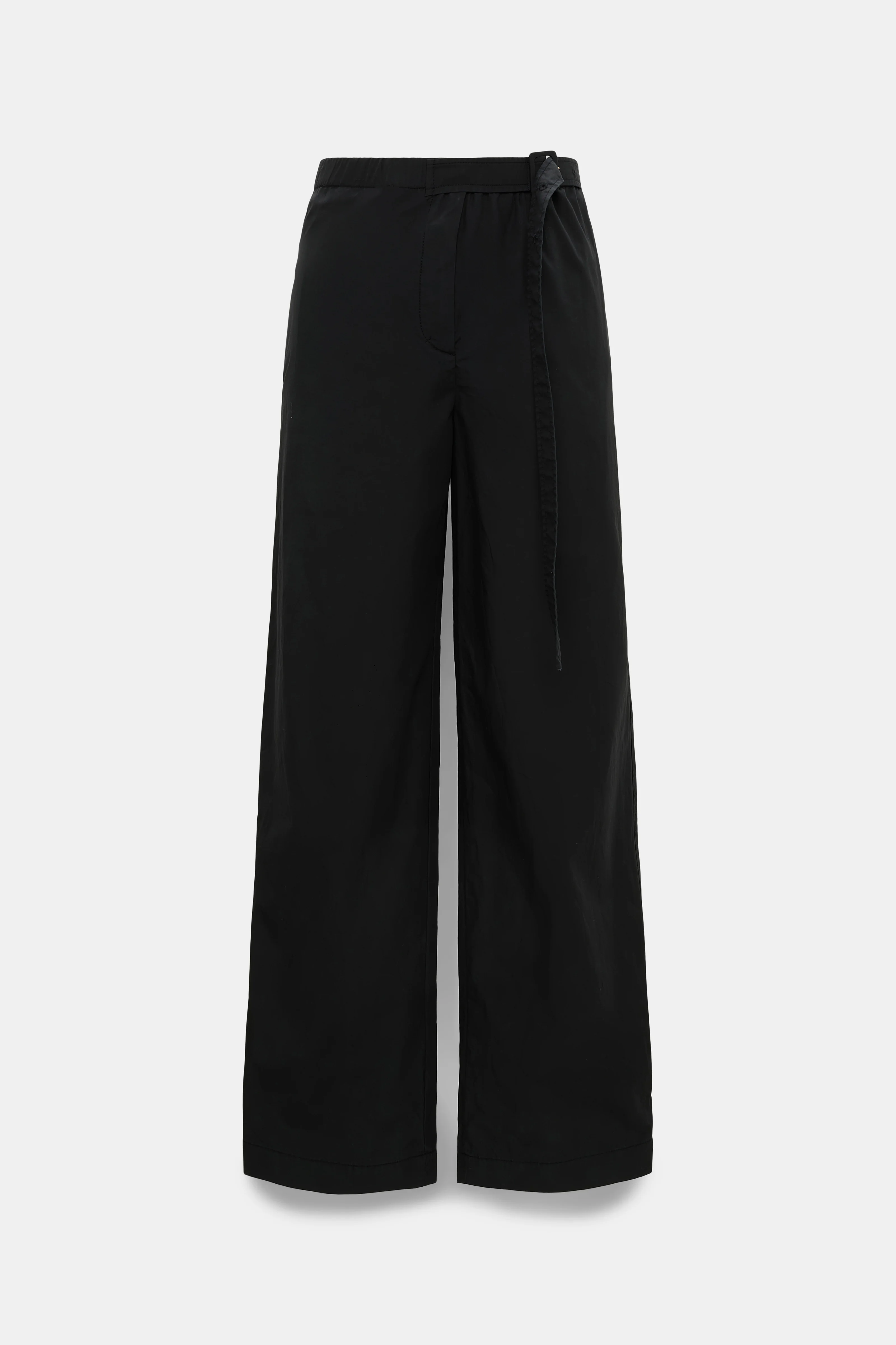Styled with a gathered waist and slight dropped crotch, the relaxed pants are an easy style for every day in lightweight cotton. The pants feature a buttoned tab at the ankle and a belted sash. Material & Care - 100 % Cotton - Lightweight cotton pants - Elastic waist with belt detail - Seamed pockets - Adjustable tab closure at the ankle - Back yoke - Back flap pockets - WE CARE - This item is finished according to STANDARD 100 by OEKO-TEX, 22.0.98928 Hohenstein HTTI - Hand wash program / Machine wash - Wash with similar colors Size & Fit - Our model is 180cm tall and wears a size 2 - Mid-rise - Slight dropped crotch - Peg-top waist