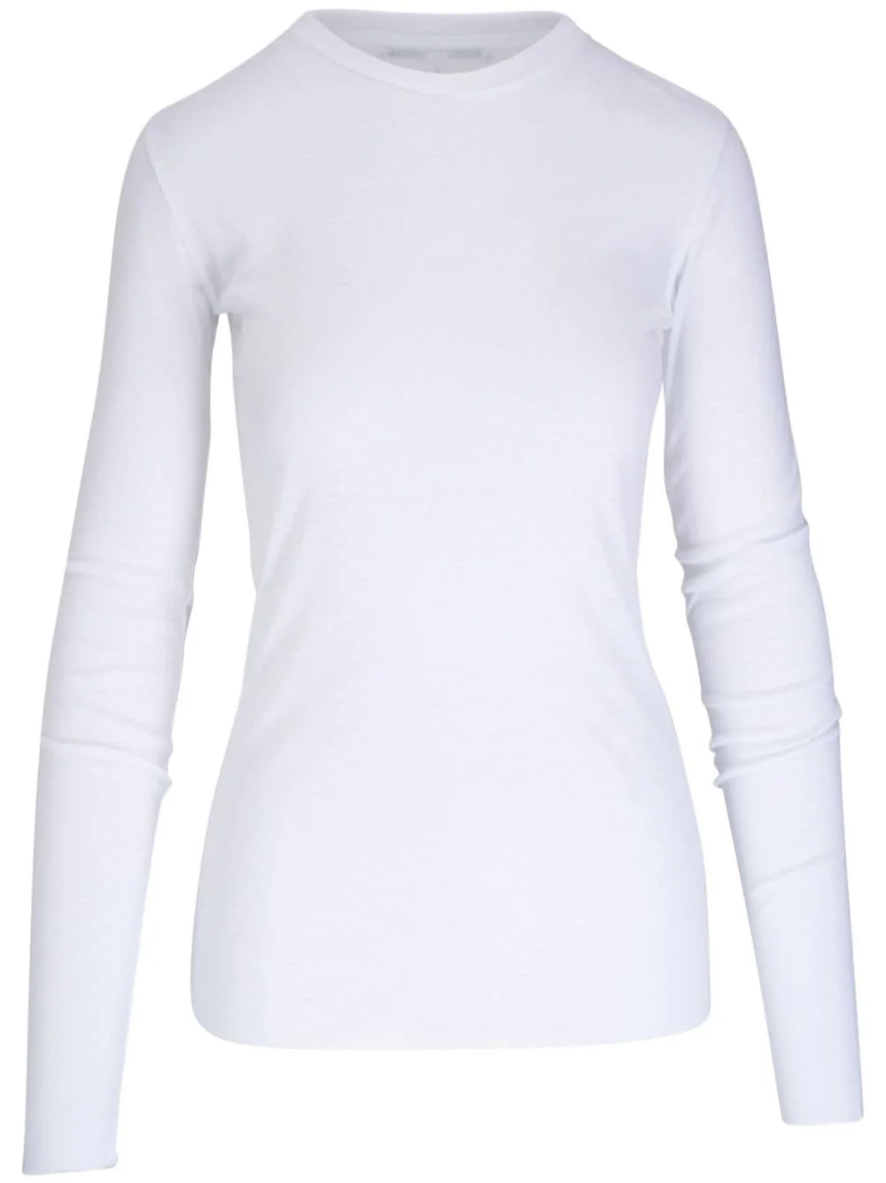 long-sleeve T-shirt Highlights - White - Lyocell-cotton blend - Jersey texture - Crew neck - Long sleeves - Straight hem Made in United States Composition Lyocell 70%, Cotton 30%