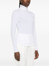 long-sleeve turtleneck top Highlights - White - Turtleneck - Long sleeves - Straight hem Imported Composition Modal 86%, RWS Wool 10%, Elastane 4% SIZE & FIT Model measurements Height 5 ft 11 in(1.8 m) Bust/Chest 32.67 in(83 cm) Hips 36.22 in(92 cm) Waist 24.4 in(62 cm) Washing instructions Dry Clean Only
