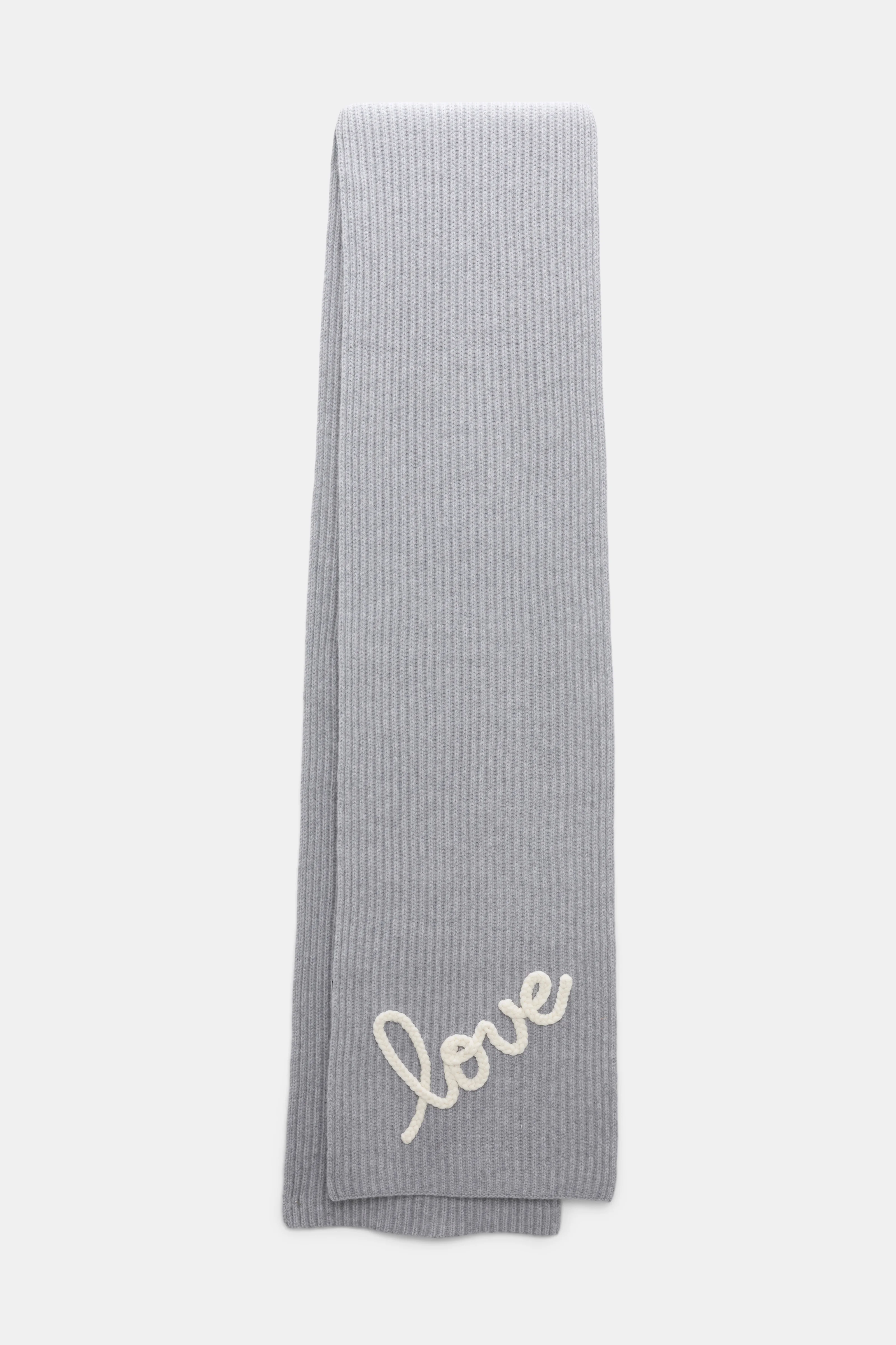 All you need is love...The chunky rib scarf is knit from the softest mix of virgin Merino wool and cashmere, and is embroidered with LOVE. Material & Care - 70 % Virgin wool (Merino), 30 % Cashmere - Ribbed knit scarf in Merino-cashmere - Lettered "love" embroidery - WE CARE - The wool content is mulesing-free