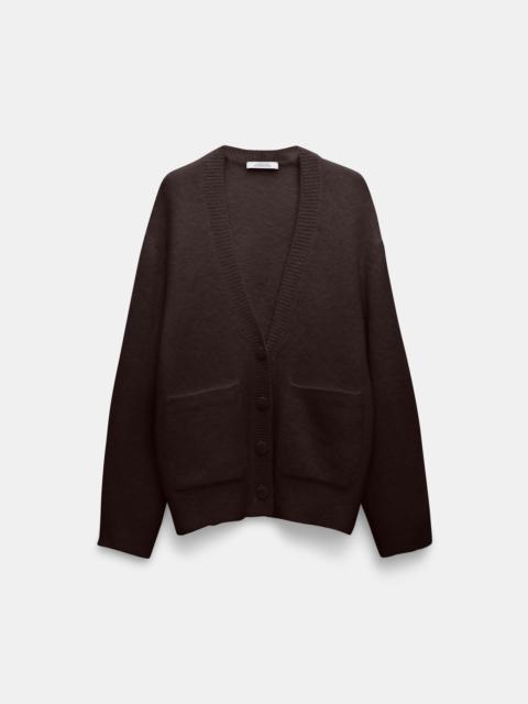 Coziness redefined: The relaxed fit cardigan has a deep V-neckline and is knit in the softest new alpaca mix. Material & Care - 72 % Alpaca, 20 % Polyamide, 5 % Virgin Wool, 3 % Elastane - Deep V-neck cardigan - Knit with new alpaca yarn - 2 patch pockets - WE CARE - The wool content is mulesing-free - WE CARE - The wool & alpaca yarns are finished according to globally recognized standards promoting animal welfare and land management. - Hand wash cold / Machine wash old - Wash with similar colors Size & Fit - Our model is 180cm tall and wears a size 2 - Relaxed fit - Dropped shoulders - Relaxed sleeves - Falls to the hip